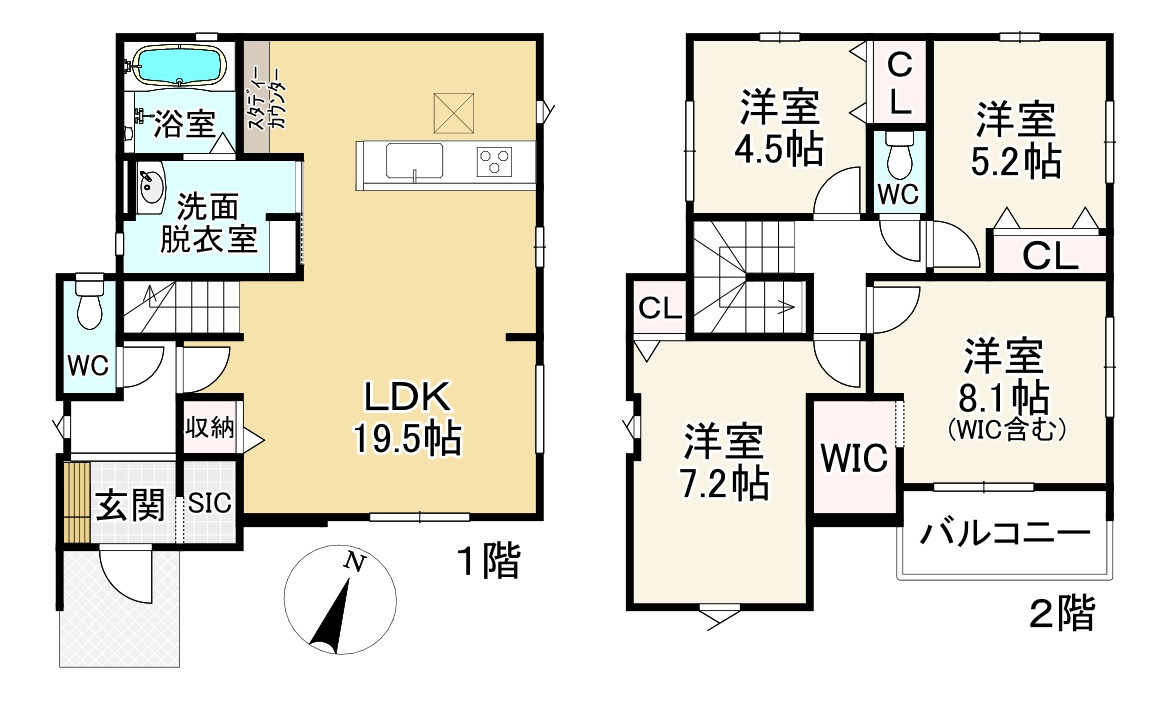・2階洋室すべてに収納があり、内2部屋はWIC!