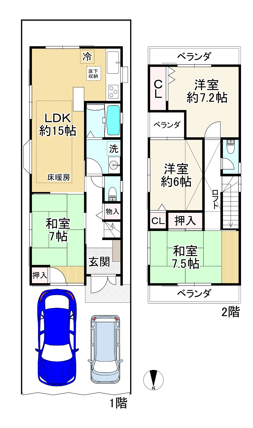 ■2階建・4LDK■オール電化住宅■掘込車庫2台駐車可能♪(車種による)■季節の入替に便利!ウォークインクローゼット有り♪■カウンターキッチンの為、家族とコミュニケーションとりながら料理可能!■ガーデニングや遊び場に◎お庭がございます♪