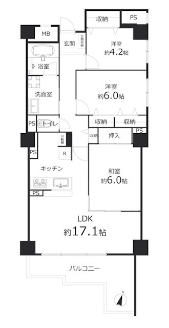 ペット飼育可(規約による制限有)。14階建の6階部分。3LDK。全居室収納有り。2面バルコニー。2025年12月リフォーム済(浄水器一体水栓キッチン新調、洗面化粧台新調、トイレ新調、ユニットバス新調、建具新調、全室クロス貼替、全室フローリング上貼り、玄関収納新調、給湯器交換、照明器具新設、分電盤新調、ハウスクリーニング、他)。
