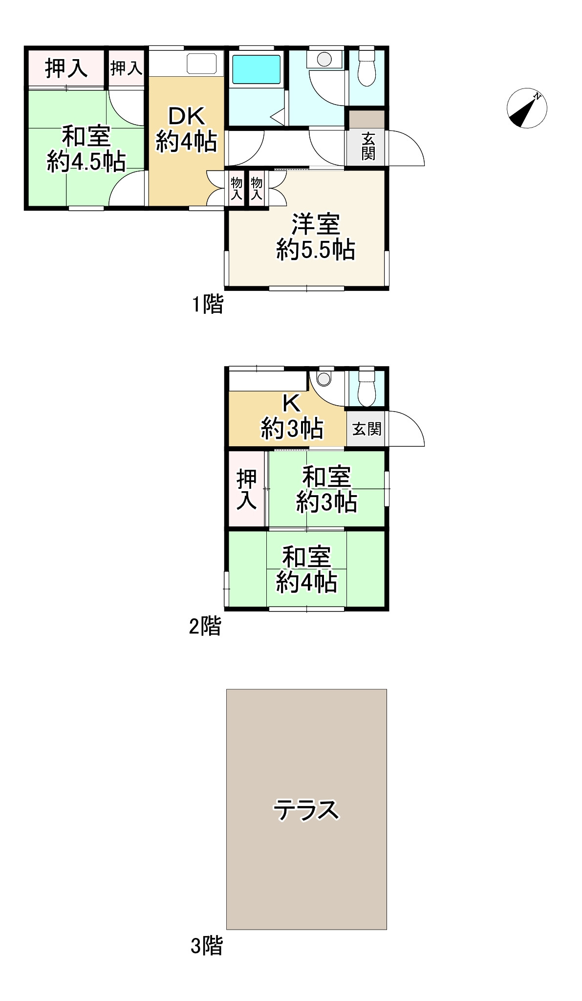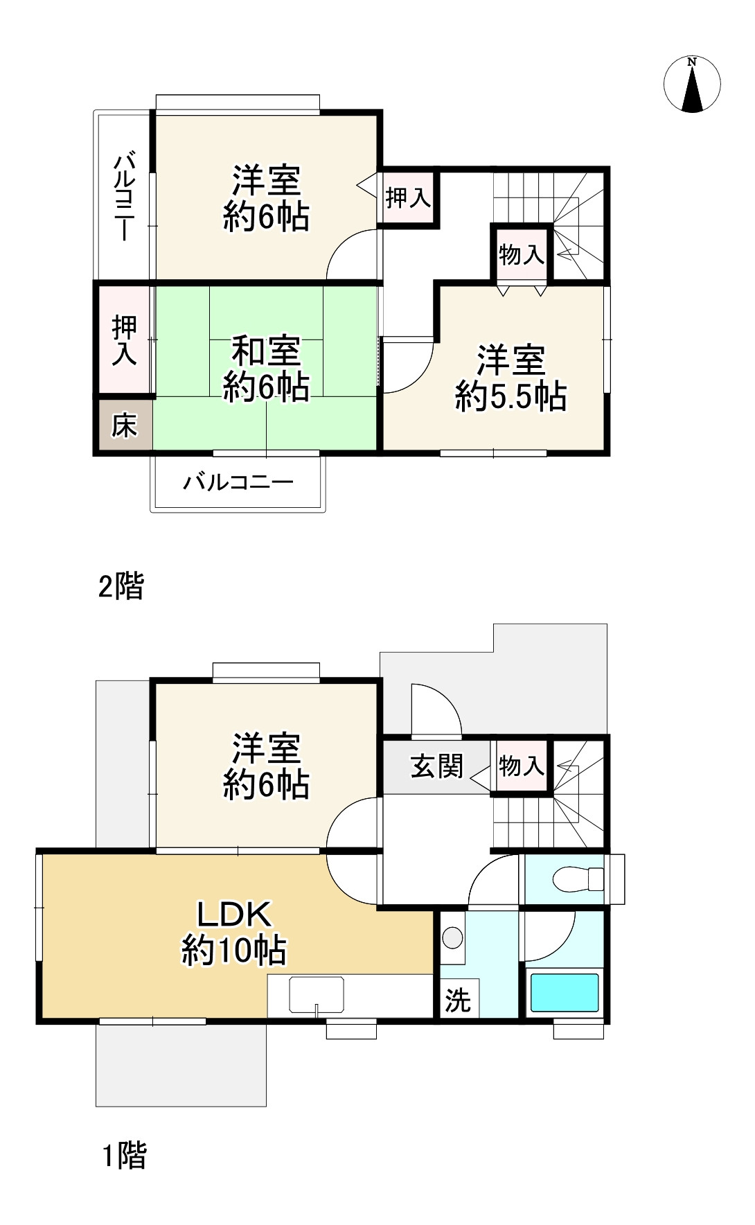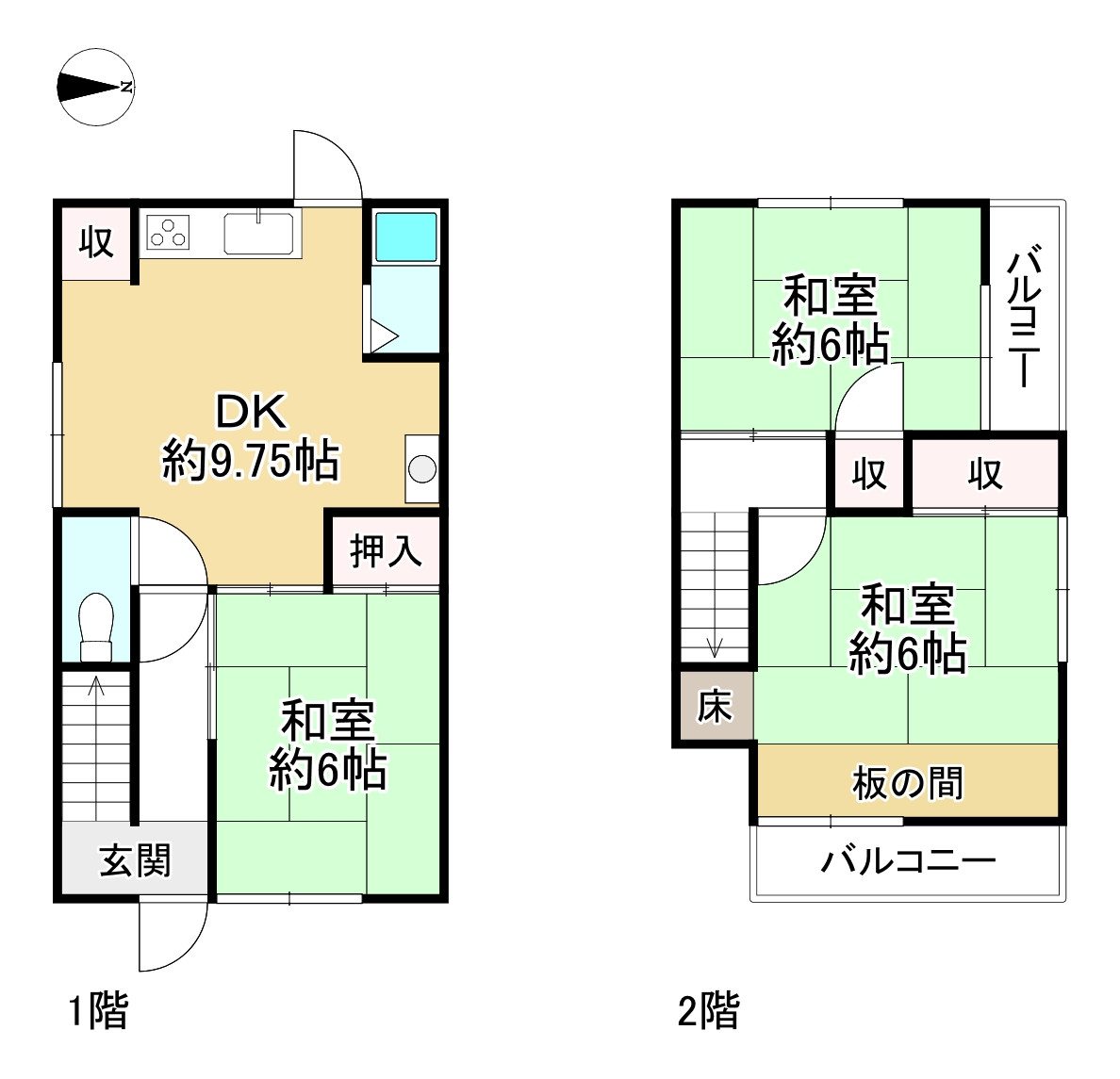 3SLDK(S=納戸)。全居室6帖以上。ベランダは西向き。令和7年9月上旬リフォーム完成済(クロス全室貼替、畳表替え、襖張替え、トイレ1階、2階便座新調、IHコンロ新調、レンジフード新調、LDKフロアタイル増張り、ハウスクリーニング)。