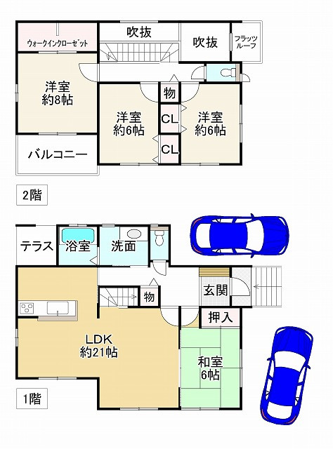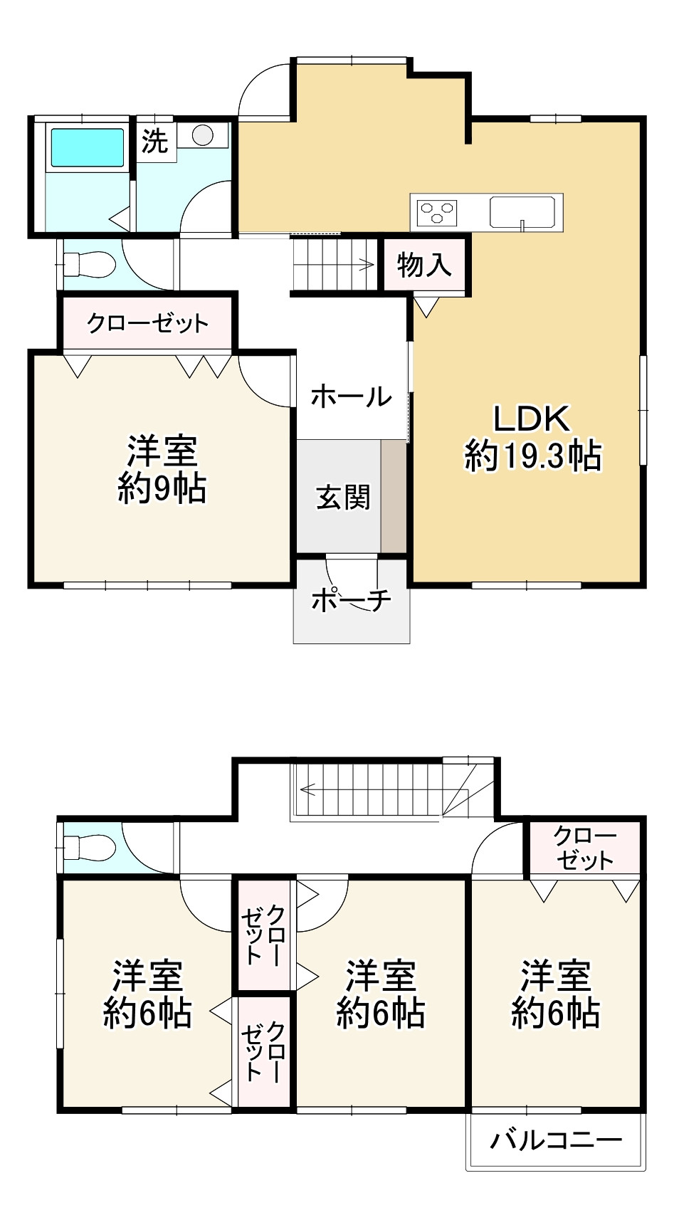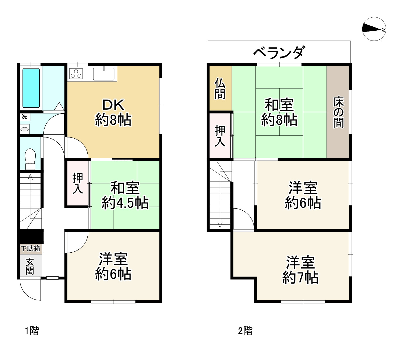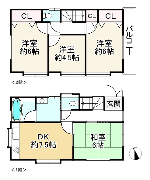 4LDK。全居室6帖ございます。全居室収納有り。駐車スペース2台可能(車種によります)。空家につき引き渡し即可能。令和7年9月下旬リフォーム完成済(キッチン新調、浴室新調、温水洗浄便座交換、TVモニターフォン新調、洗濯水栓・パン交換、洗面台新調、トイレ新調、戸当たり交換、階段滑り止め施工、シーリング交換、建具調整、床見切り施工、ベランダン防水、畳・襖・障子張り替え、クロス全室張替え、ソフト巾木交換、床施工(フロアタイル・CF)、エアコンキャプ交換、ハウスクリーニング)。