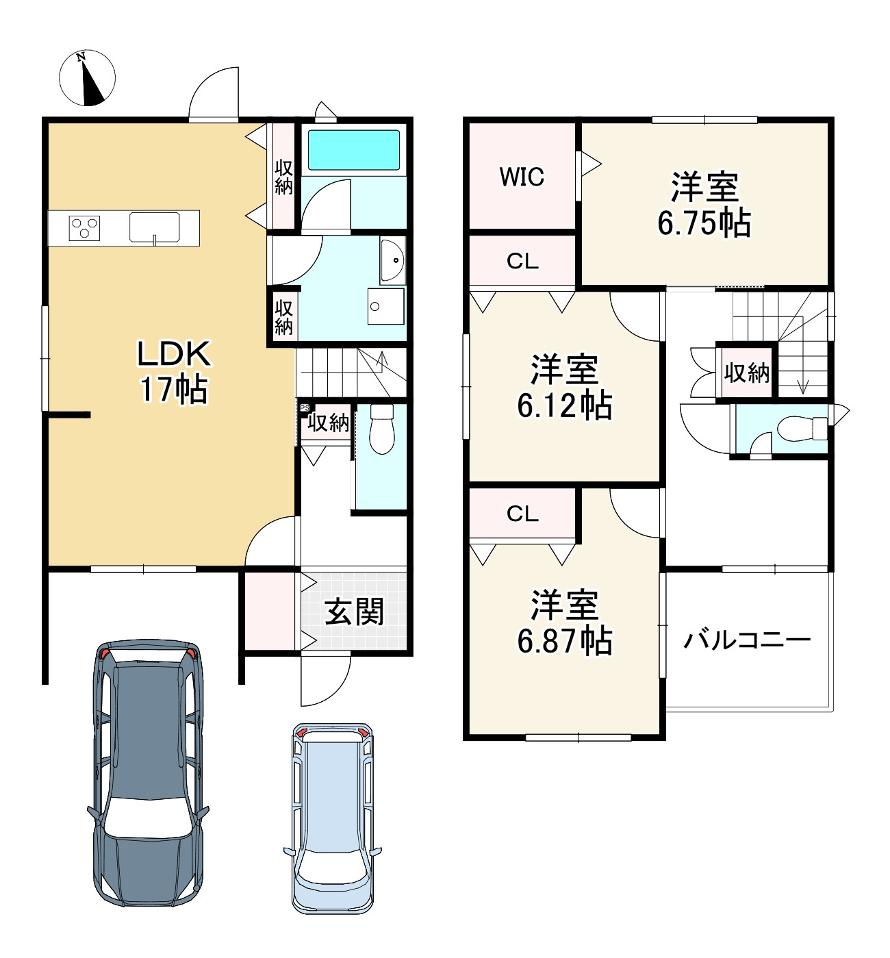 | 備考 | ※普通自動車1台、軽自動車1台駐車可能 ※駐車可能台数は車種によります。車庫証明の可能台数ではありません。 |