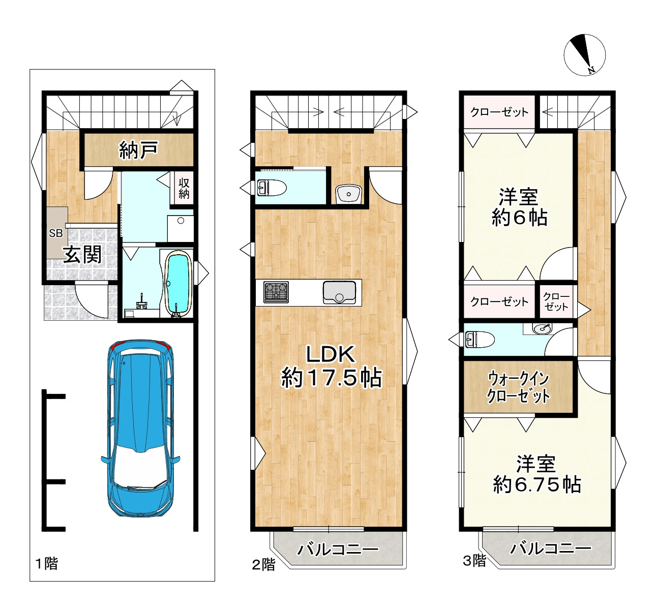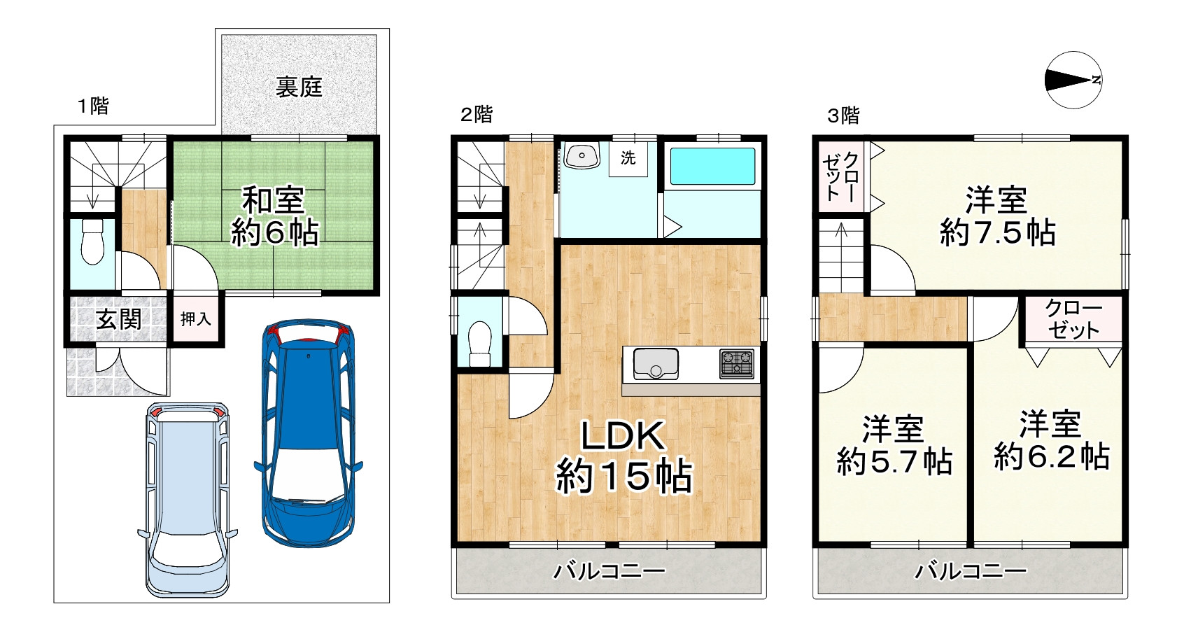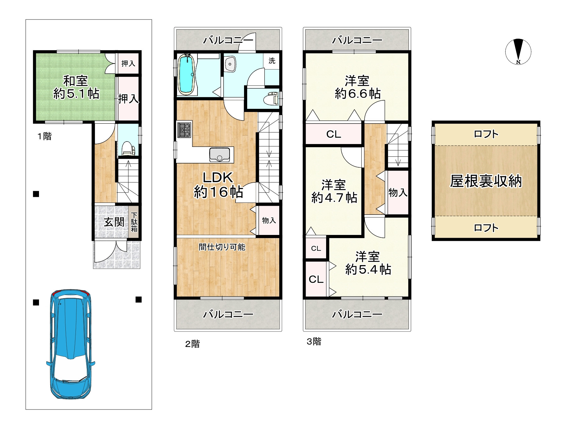 ◎木造3階建て、4LDKの間取り。