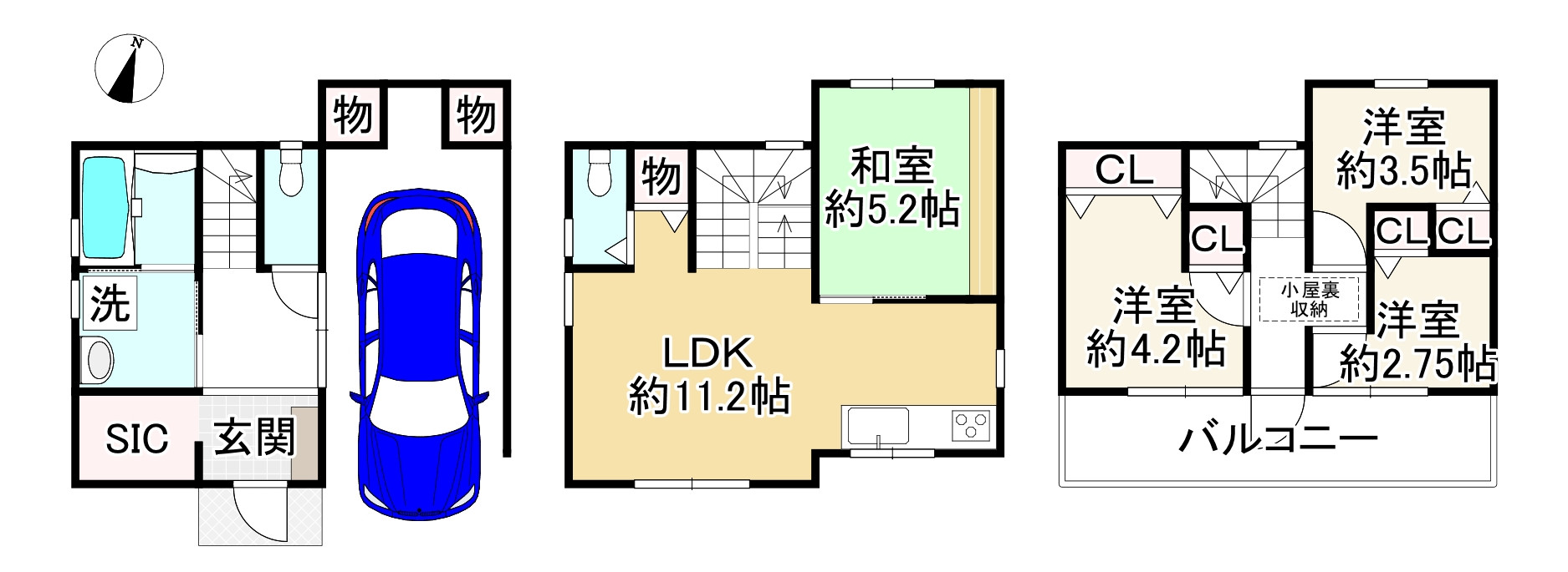 ◆木造3階建て・4SLDK。バルコニー2ヶ所。