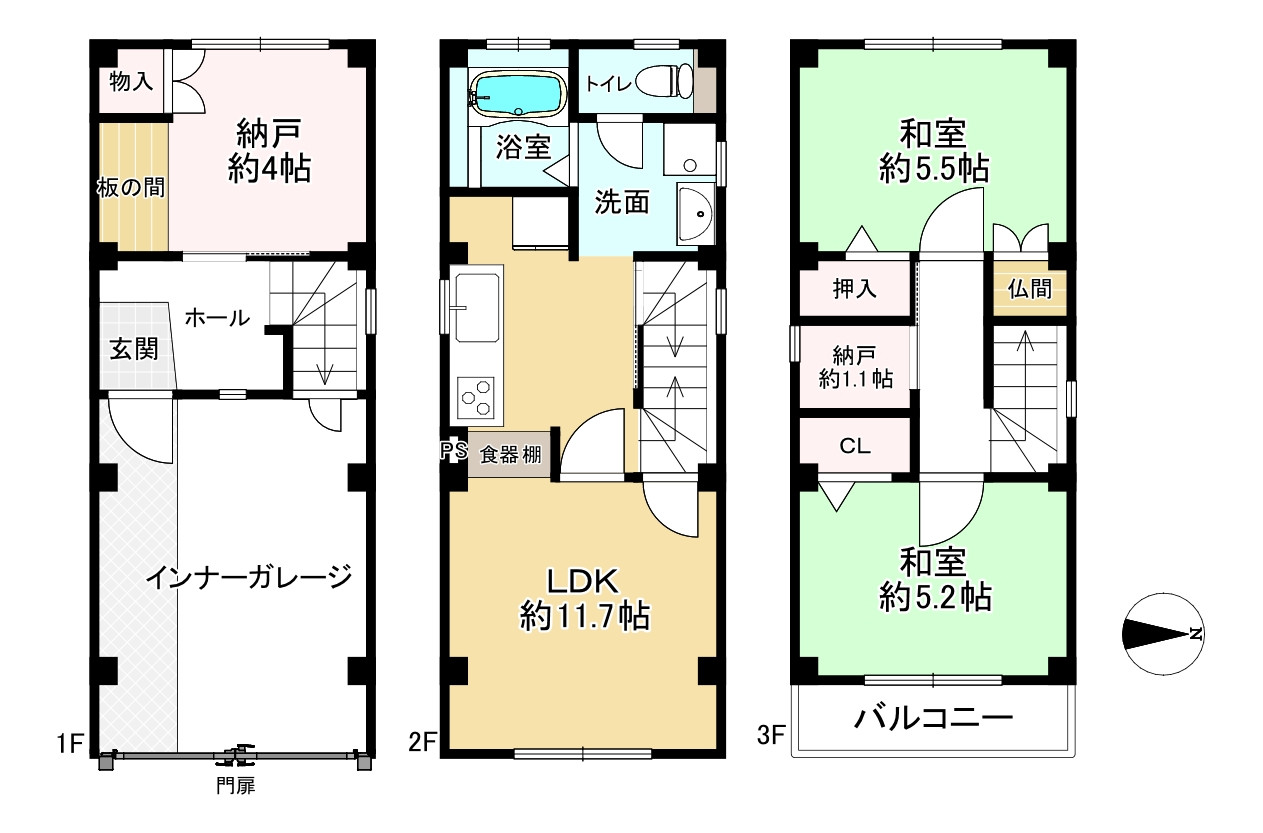 ◎1階シャッター付きガレージ付き木造3階建て