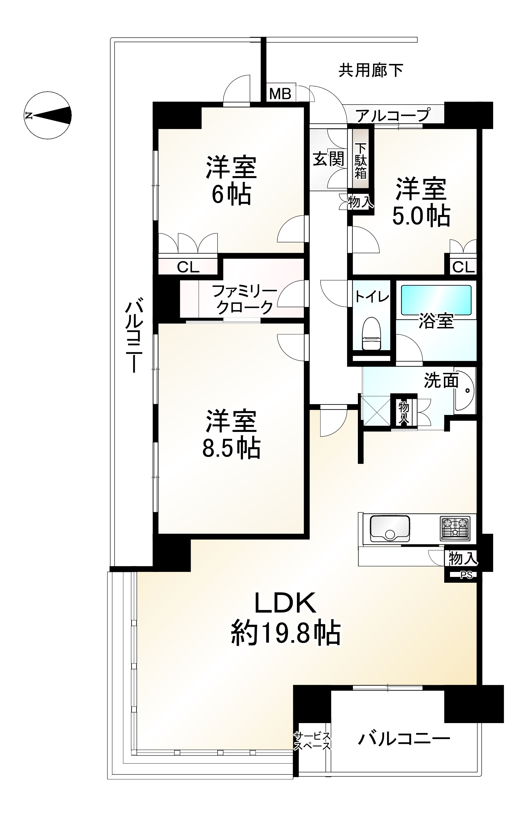 - 87.25㎡(26.39坪)壁芯