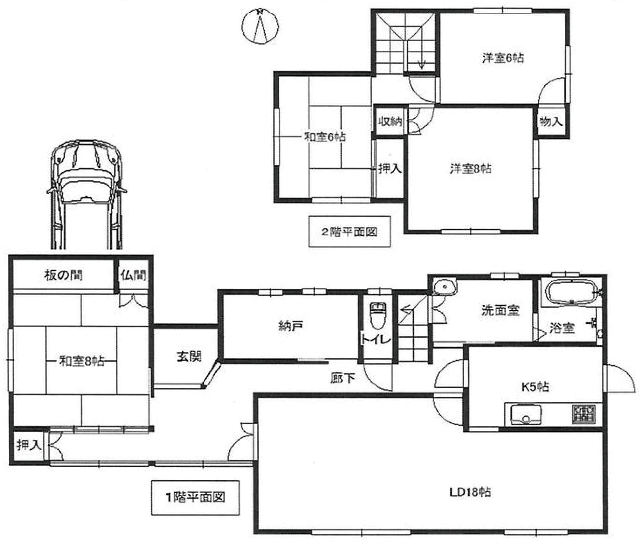 ★令和4年8月リフォーム済:全室クロス貼替(壁・天井)/キッチン交換/LDK・1F納戸・2F洋室(2室)/フロア材施工/和室(襖・障子・畳)貼替/ハウスクリーニング/植木剪定★前面道路 幅員約6m★駐車スペース 堀込車庫1台分有(車種による)
