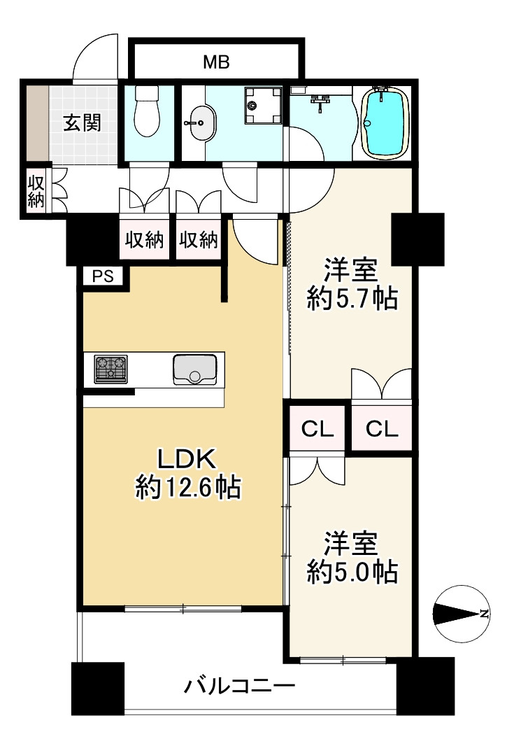 - 56.37㎡(17.05坪)壁芯