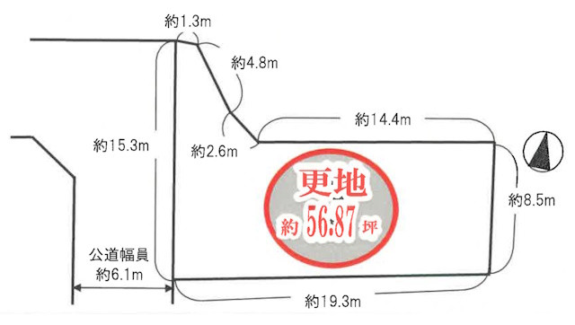 敷地面積約103坪。建築条件無し。お好きなハウスメーカーで建築が可能です。店舗用地や事業所用地としてもご検討いただけます。