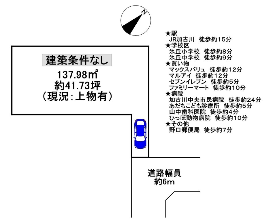 建築条件無し 即時引渡し可能 加古川駅徒歩約10分・氷丘南小約950m・氷丘中約2000m・マルアイ約700m