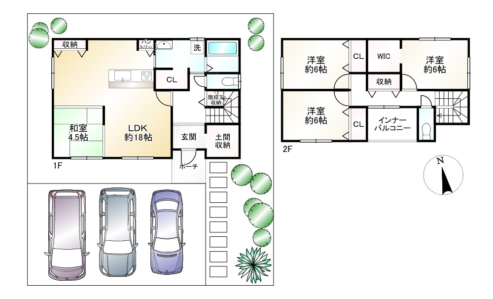 ・建物参考プランは並列3台駐車可能!ウォークインクローゼット付き!