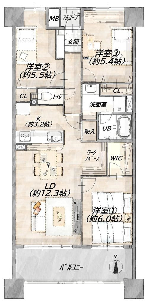 | バルコニー面積 | 12.37㎡ | ||