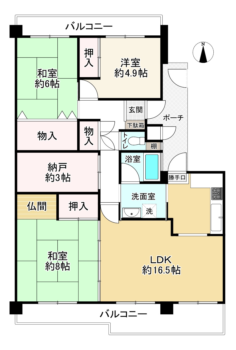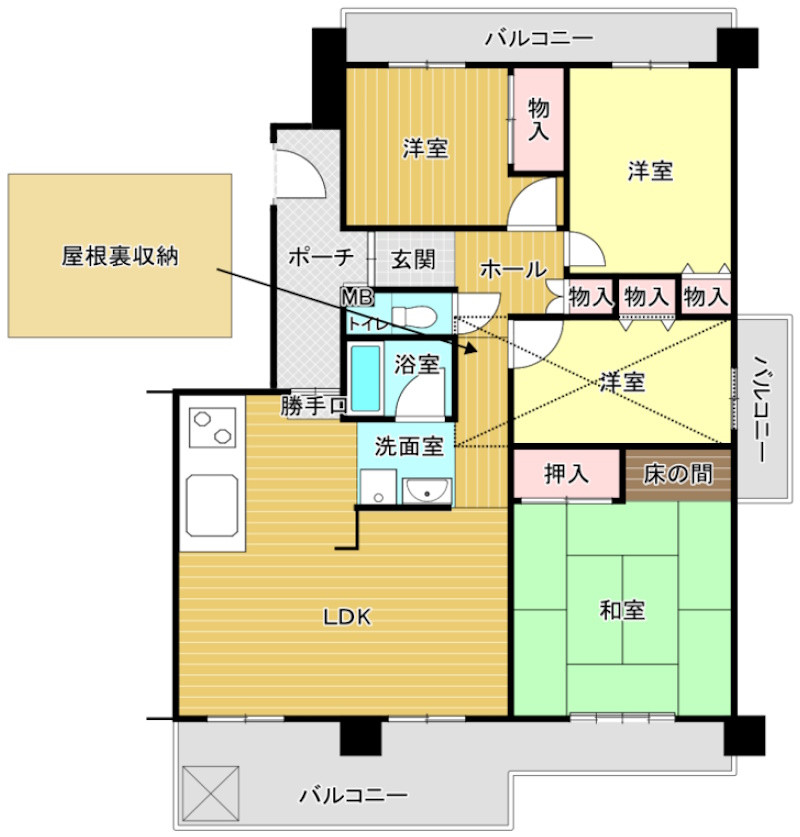 | 庭・バルコニー | 2面バルコニー |