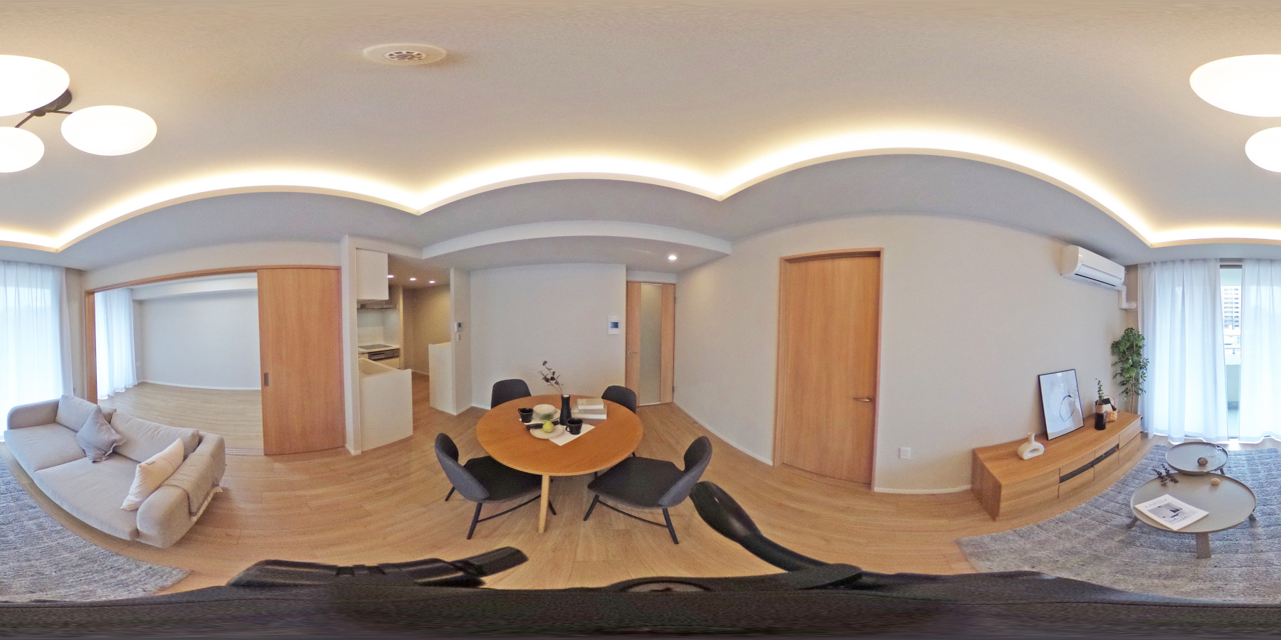 システムキッチン新調/ユニットバス新調/トイレ新調/洗面化粧台新調/防水パン・洗濯水栓新調/壁・天井クロス張替/フローリング張替/フロアタイル張替/クッションフロア張替/建具・玄関収納新調/スイッチ・コンセント新調/エアコン1基(リビング)設置/ハウスクリーニング等