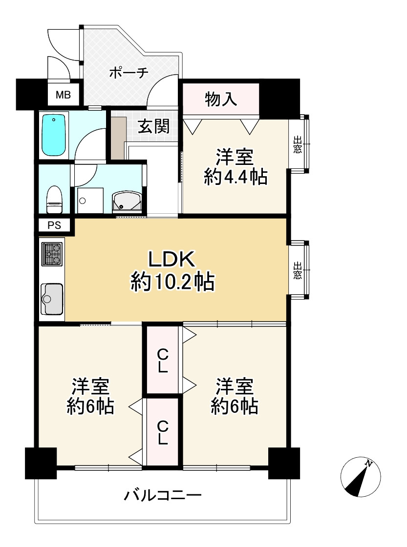 | 設備・機能 | 室内洗濯機置場、エレベーター、出窓、ガス給湯器 |