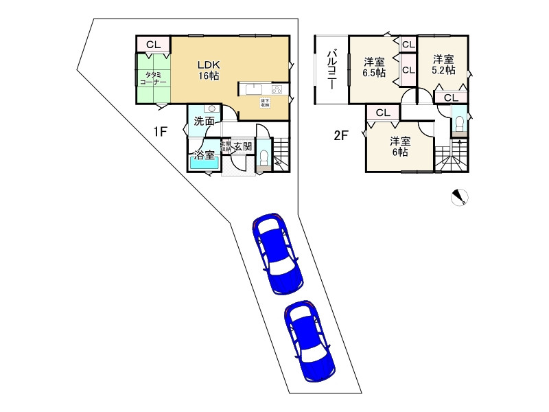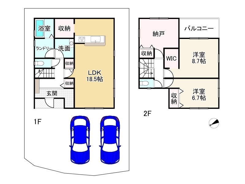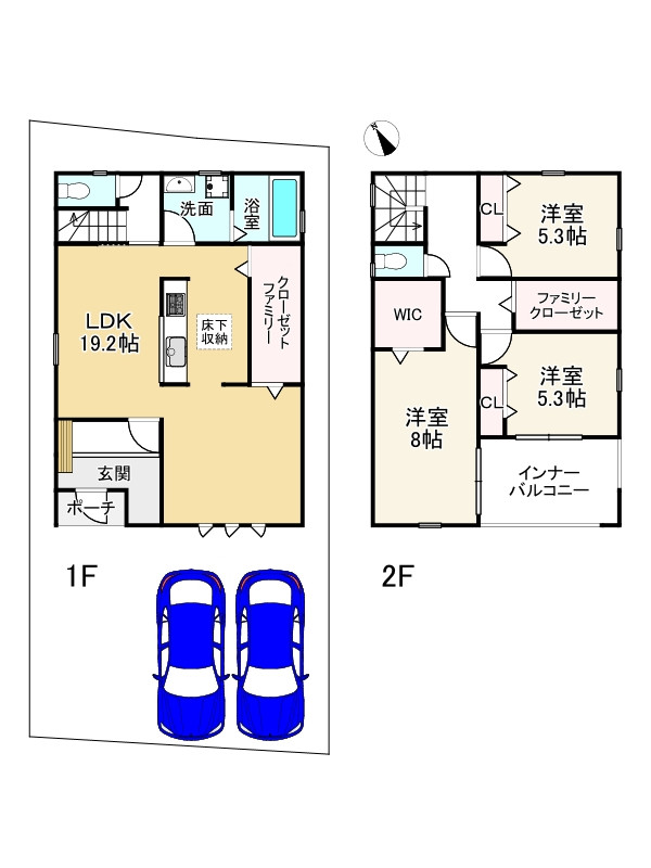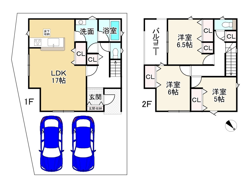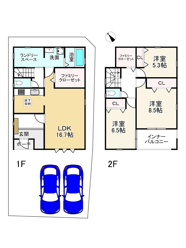 ・天候に関係なく洗濯物が干せるランドリースペースあり お料理に集中できる壁付キッチンです 1階と2階にファミリークローゼットがあり、季節物等スッキリ片付きますね 各部屋収納もあり、お部屋を有効に使えますね 鳩里小学校まで約710mとお子様の通学にも安心ですね