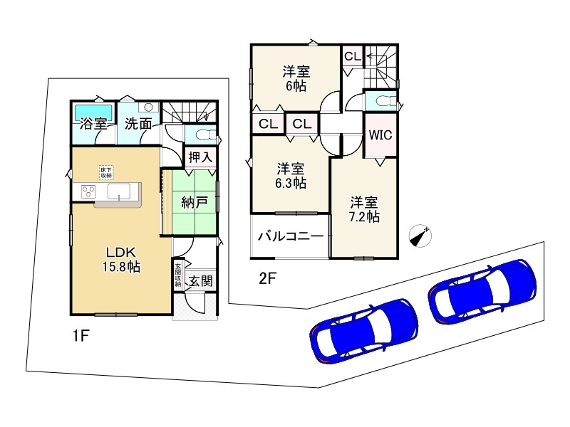 4LDK WICが2か所あり、衣類やカバン、スーツケース等大きな物もすっきり収納できます 並列駐車2台可能 雨の日などに心強い浴室乾燥機付!洗濯物を乾かすだけでなく、カビ防止にもなる嬉しい設備。 ご家族とのコミュニケーションが自然と増えるリビング階段!
