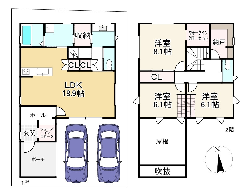 | 設備 | 公営水道、汚水-本下水、雑排水-本下水、トイレ2ヶ所、Wクロゼット、オール電化 | ||