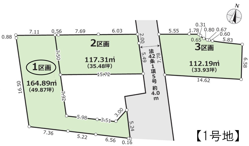東側の道路向かい。