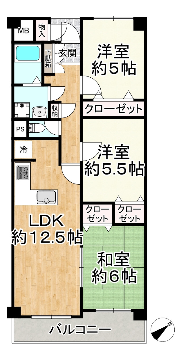 ○専有面積:76.85㎡の3LDK
