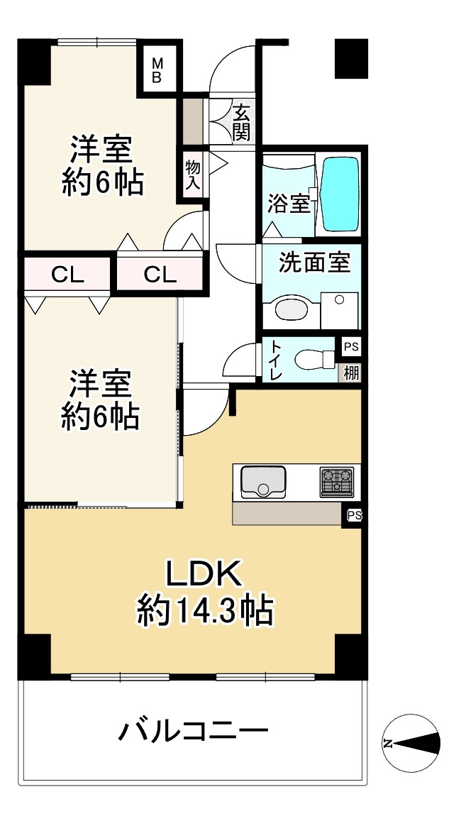◎単身の方や新婚様におすすめの振り分けタイプの2LDK