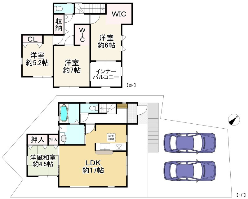 ☆車庫1台+駐車スペース2台有り!(駐車場台数は車種による)
