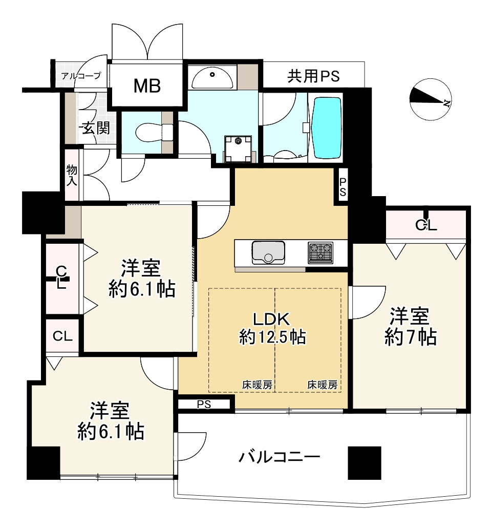 ◇令和7年10月リフォーム完成済!3LDK+2面バルコニーがある1階部分のお部屋◇南・北向きの2面バルコニーがある為、日当たり・通風良好です。全居室6帖以上あり、便利な収納スペース付きです。