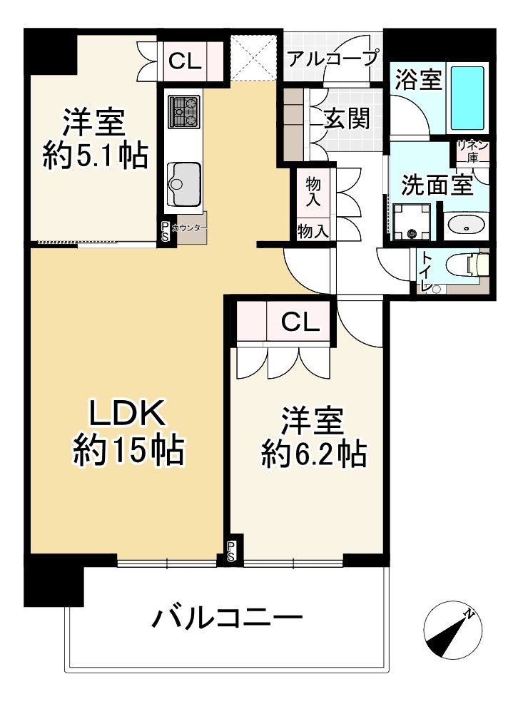 ・2面バルコニーあり★開放感あり、陽当たりや風通し良好★