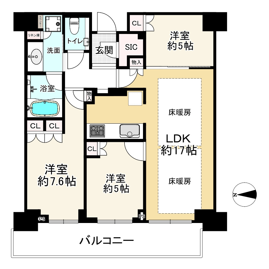●フローリング新規貼替●壁・天井クロス新規貼替●建具・玄関収納等新規交換●LIXIL製洗面化粧台新規交換●TOTO製洗浄便座付トイレ新規交換●TOTO製追焚機能(循環式)付ユニットバス新規交換(浴室換気乾燥機付)●田中工藝製システムキッチン新規交換(食器洗い機付き)●照明器具新規設置 ※1●エアコン一基新規設置●ディスポーザー新規設置●床暖房マット新規設置