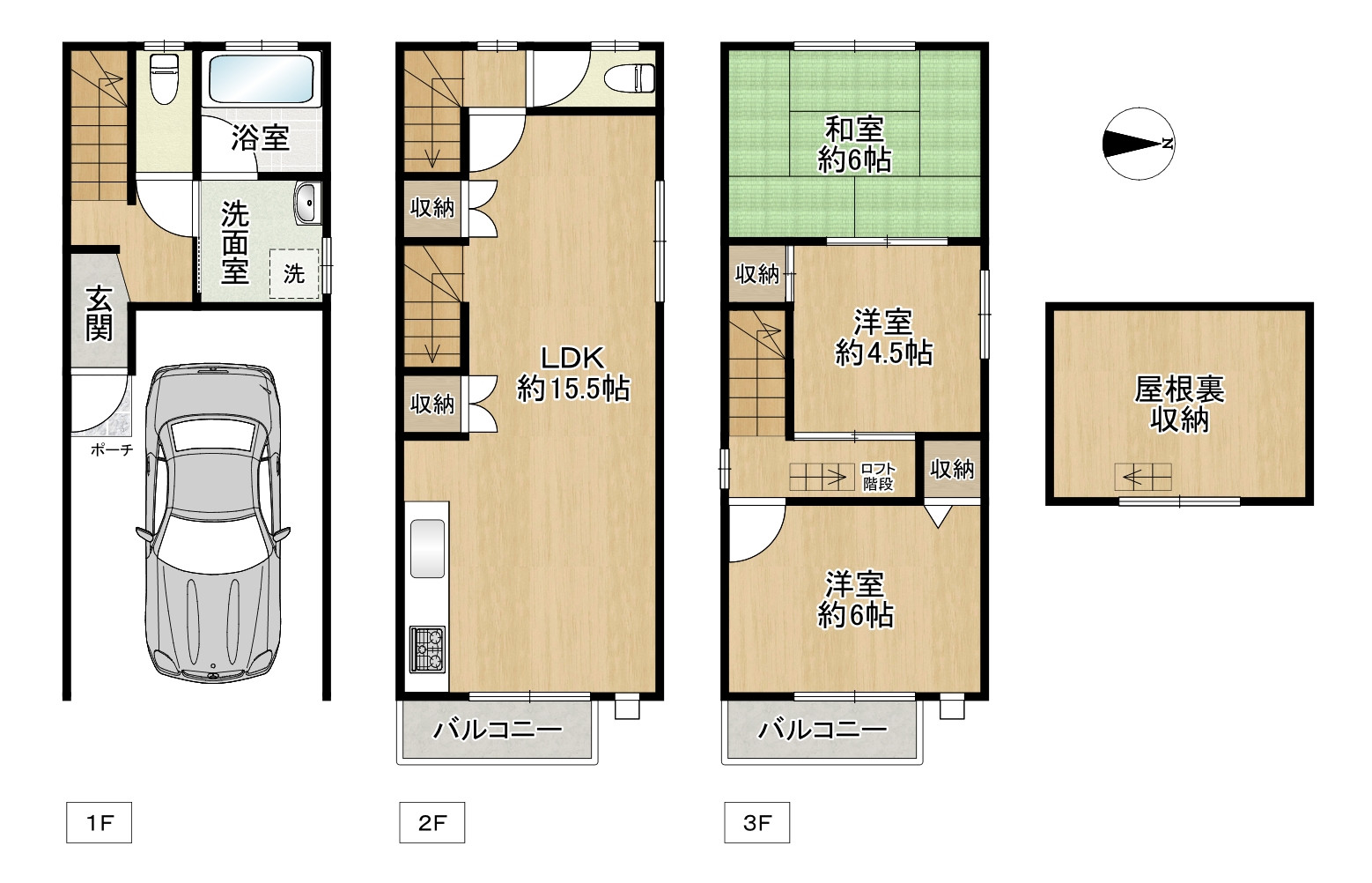 ■3DK+屋根裏収納付きの物件です♪
