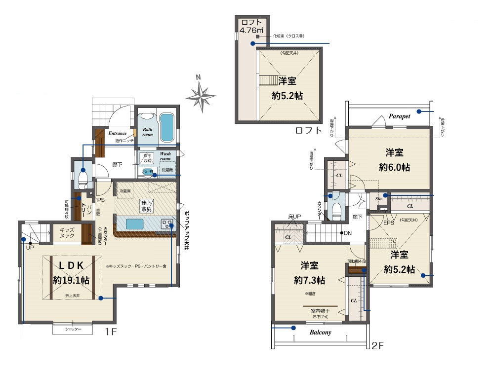 ■令和8年5月下旬完成予定☆ ■カースペース1台分あり☆ ■3LDK+ロフト+キッズヌック♪