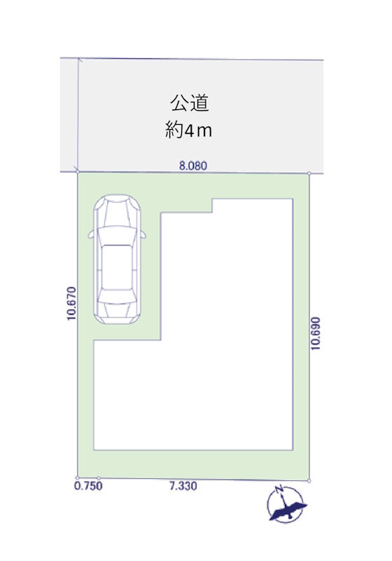 一方( 北側 幅員約4.0mの公道に約8.0m接道 ) | ||